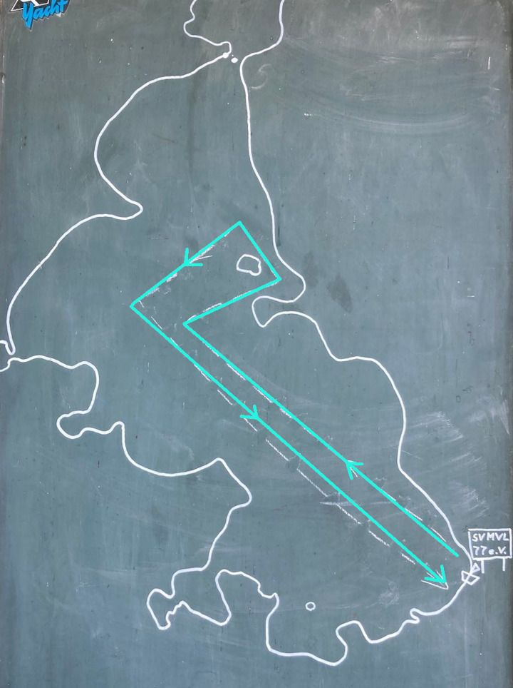 Ziel ist die Umrundung der Insel auf der Nordseite des Parsteiner Sees. Auf der Abbildung unten seht ihr den Kurs - kann je nach Windverhältnissen natürlich erheblich abweichen.